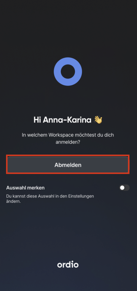 Wenn der Mitarbeiter keinen Workspace (keine Firma) beim Anmelden in der Ordio App auswählen kann, könnte folgende Meldung erscheinen: